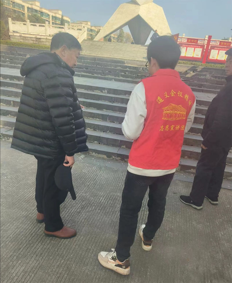 省正定中學利用返校宣講的機會,對2312班的53名同學進行遵義會議精神宣講活動。2024年1月19日下午三點至五點,杜林前往山東省臨沂市蘭山區人民廣場向約50名群眾講解遵義會議精神,主要向民眾介紹了遵義會議的背景主要內容和對中國革命的意義,并把印發的宣傳單送給他們留作紀念。