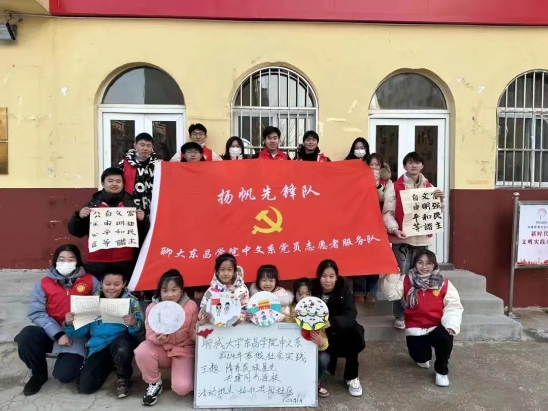 為全面貫徹習(xí)近平新時代中國特色社會主義思想,引領(lǐng)廣大青年學(xué)子利用寒假開展豐富多彩,主題鮮明的社會實(shí)踐活動。中文系揚(yáng)帆志愿者先鋒隊(duì)于1月15日在聊城市東昌府區(qū)站北花園小區(qū)開展“情系民族星光, 共建同氣連枝”寒假社會實(shí)踐志愿活動。