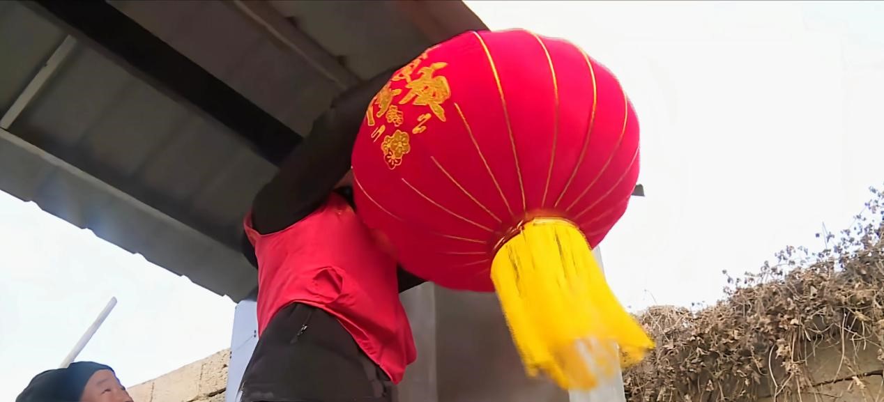 (圖為志愿者為孤困兒童家中掛燈籠)