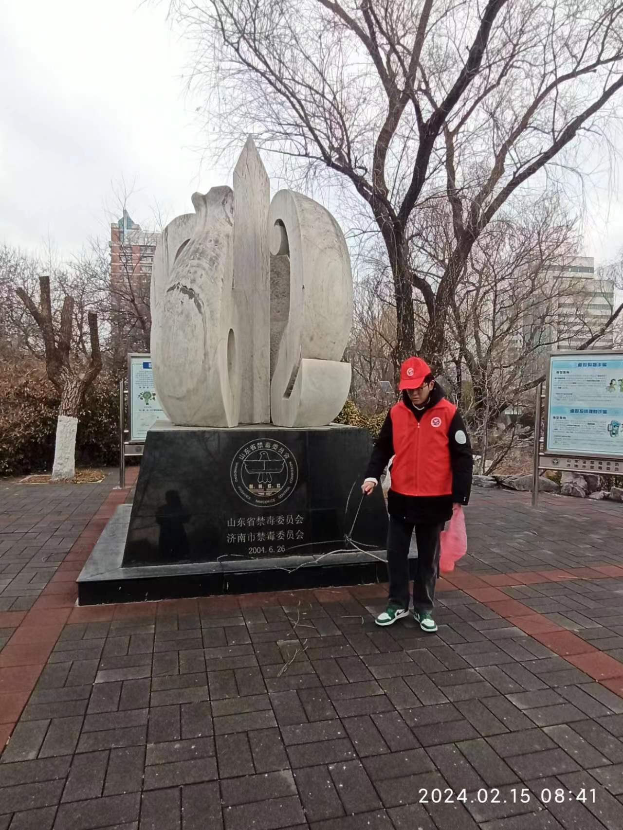 2月14日夜間,濟南市區中小雪交替,雖然總降雪量不大,但大風呼嘯,氣溫相較日間下降十余度,實踐隊員所住社區內樹木枝葉散落一地。由此實踐隊員們聯系到植被豐富的濟南泉城公園內想必也是此番狀況,加之經過12日一上午在園區內的實踐工作,隊員們深知園區內春節期間巨大的人流量。為服務廣大群眾出游,縝密考慮后,實踐隊員們決定于15日上午跟隨濟南市關愛農民工志愿者協會進行泉城公園落葉、殘枝大清理。