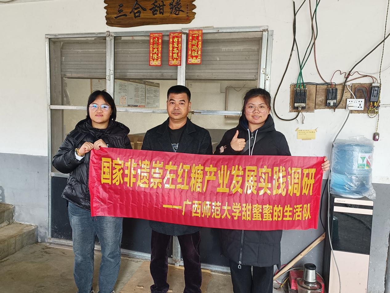 圖為“龍州紅糖甜蜜蜜”社會實踐隊與非遺傳承人的合照留念。