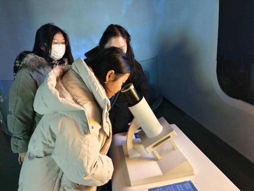隨后,在旅游資源展示區,極具榮成特色的海參館、海帶館兩個專題館,激發了我們探究的興趣。從講解員通俗易懂的語言中,我們了解到了海參和海帶的種類、特性,還了解了海鮮儲存方法、漁民習俗等漁家文化。此外,我們還通過顯微鏡親身觀察了海帶孢子有性繁殖的動畫影像。在工作人員的幫助下,取出海帶褐斑狀物放在顯微鏡下觀察,才知道海帶由無數孢子囊組成,無數游動的孢子在里面孕育。“其實榮成一直有“中國海帶之鄉”美譽,海帶產量多年居全國首位”,工作人員講解到,“榮成海帶中的碘、膠、醇及蛋白質等營養元素含量均遠高于國內其他地區,是真正的純天然綠色保健食品。”聽到這些息后,我們對海帶繁育的了解更加深刻。