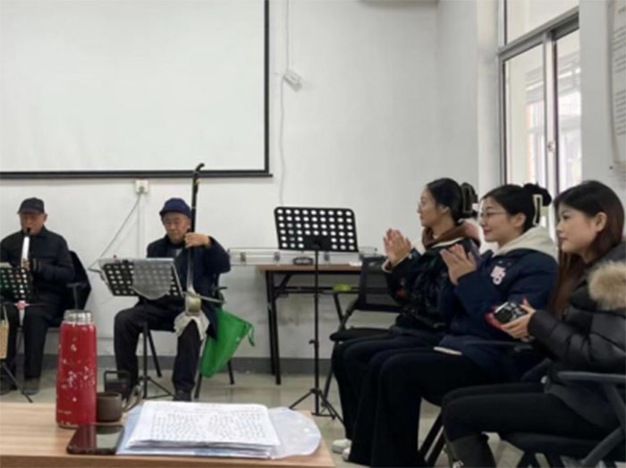實踐團與老人一起看音譜