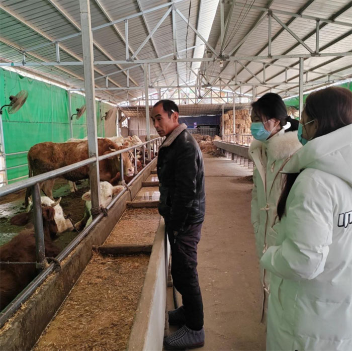 四、書生氣熱血灑鄉土,養殖業深耕育碩果 1月31日,實踐團隊對十林鎮的養殖業進行廣泛調研,研究發現多數村子發展重心在糧食和果蔬種植上,這與當地位處中原,地勢開闊適宜農業發展密不可分,養殖產業規模不大且多為散戶養殖,種類單一,多為牛羊,雞鴨等,但近些年,產業規模仍有可觀擴大,新興養殖種類層出,特別是蚯蚓養殖,脫離了傳統養殖范疇,提高了土地利用率。家畜養殖(如牛)仍是中堅力量,養殖模式越發成熟,科學,經濟價值較高。團隊成員為養殖戶科普專業知識提高養殖效益,體驗養殖環境增長生活知識和經驗,就“動物健康與疾病防控”、“養殖規模與經濟效益”兩方面為當地養殖戶提出重要建議。