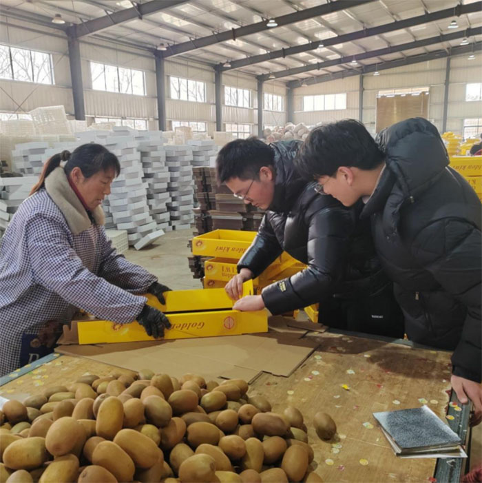 二、深耕“1+N”特色產業體系,知行合一扎根鄉村一線 1月29日,實踐團來到當地盛達農業智慧農業示范區,在工作人員的帶領和介紹下,成員參觀了園區內小蘑菇,紅栗南瓜,水果蘿卜,圣女果,草莓等多種農業產品種植基地,深入了解了園區內農產品的種植,保存,運輸,銷售等多方面的豐富知識及仍待解決的難題,并且近距離接觸了新興產業無土栽培技術應用下的植物工廠,感受農產業從業人員將理論應用于實際的生動實踐和智慧結晶,感受到了農業科技的魅力。隨后實踐團隊來到獼猴桃生產基地及其電商服務平臺,跟隨工作人員的腳步,從獼猴桃的保鮮到包裝,運輸,銷售一步步見證了高品質獼猴桃送往顧客手里的長途跋涉,實踐團隊成員還親身參與獼猴桃的生產加工過程,從中獲得了農產品生產加工運作模式的寶貴實踐經驗,深悟當今學習的實踐方向。