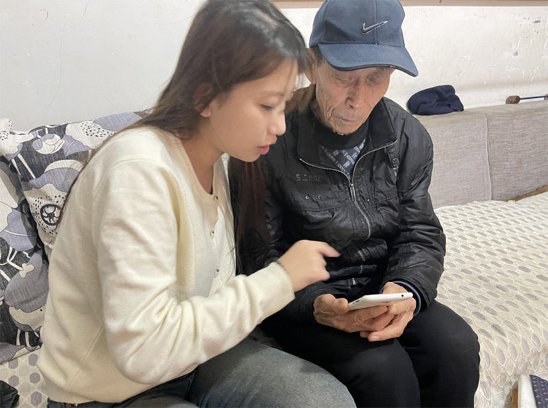 圖為實(shí)踐成員進(jìn)家門為老人安裝防詐騙的APP