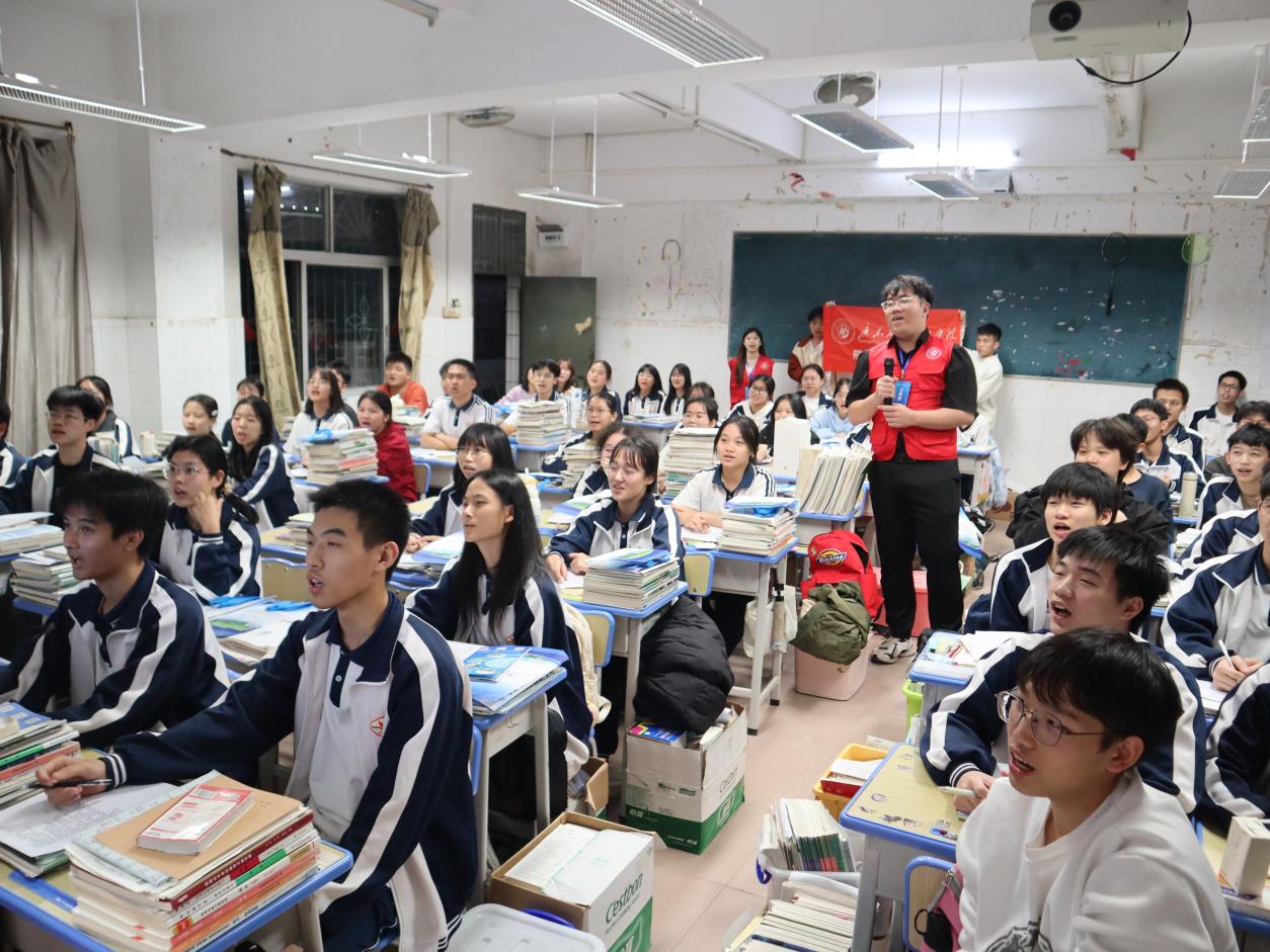 在學校老師的帶領之下,我們在自習課時間走進了一中學校的班級里面開展了宣傳活動。隊員們分工明確,積極配合,首先我們給同學們發放學校宣傳冊和宣傳袋,由團隊宣講人帶領同學們一起熟悉手冊內容。