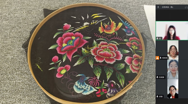 圖為實驗組成員一同欣賞彝族文化館內的刺繡展品 李家琪 供圖