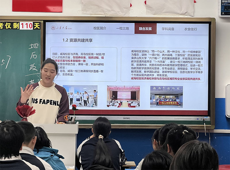 劉祉妤表示:回到母校站在熟悉的講臺(tái)上,面對(duì)著那些充滿朝氣和好奇心的學(xué)弟學(xué)妹們心中充滿了激動(dòng)和感慨。這次宣講是一次難得的機(jī)會(huì),讓她重新審視自己的成長(zhǎng)歷程,并思考如何將這些寶貴的經(jīng)驗(yàn)傳遞給更多的人。在宣講過(guò)程中,她講述了山東大學(xué)的優(yōu)點(diǎn)以及選擇山東大學(xué)的理由,分享了那些曾經(jīng)激勵(lì)我不斷前行的故事和經(jīng)歷,談到了如何克服學(xué)習(xí)中的困難,如何參加社團(tuán)活動(dòng)鍛煉自己的能力,以及如何與同學(xué)們一起度過(guò)難忘的校園生活。這些話題引發(fā)了學(xué)弟學(xué)妹們的濃厚興趣,也感受到了學(xué)生們對(duì)未來(lái)的期待和憧憬。