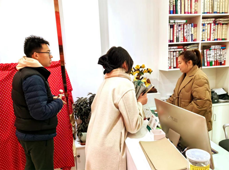 2月2日,實踐隊隊員在柯橋區中國輕紡城走訪商戶。李軼宸 攝