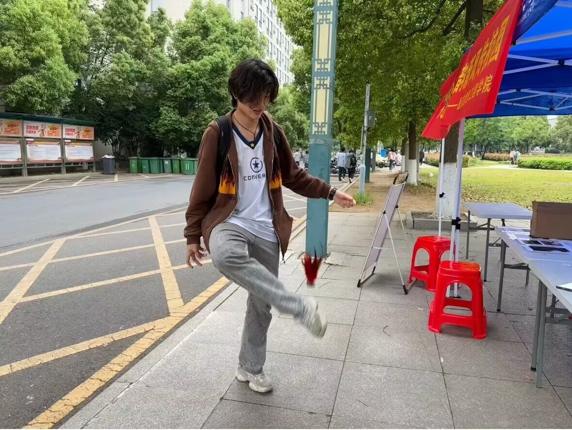 圖為參賽選手正在參與踢毽子活動,通過簡單的娛樂性體育項目,了解體育文化的魅力。
