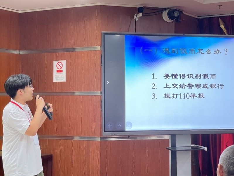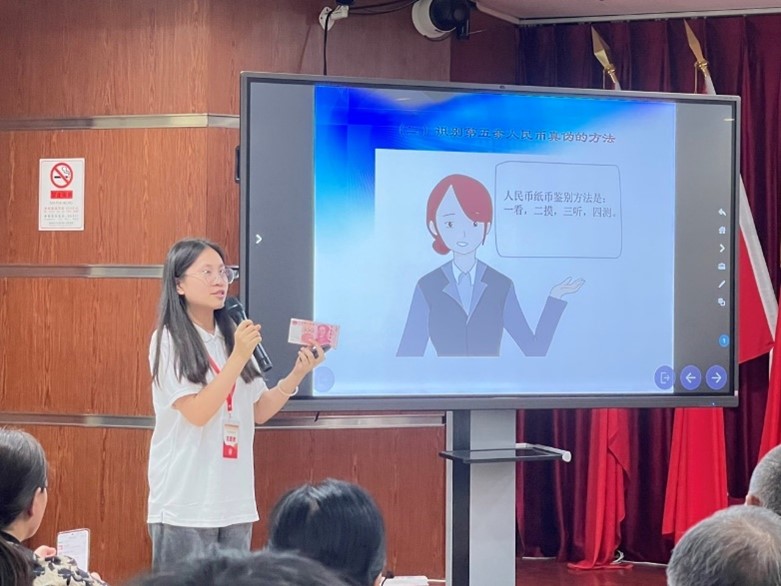 為了增強大家的辨識能力,隊員鄭嘉瑩還詳細講解了如何通過“一看二摸三聽四測”的方法辨別真假貨幣。她提醒大家,在日常生活中要保持警惕,特別是在交易時要仔細檢查貨幣的真?zhèn)危苊馍袭斒茯_。