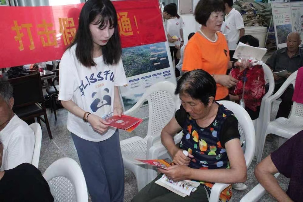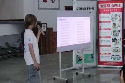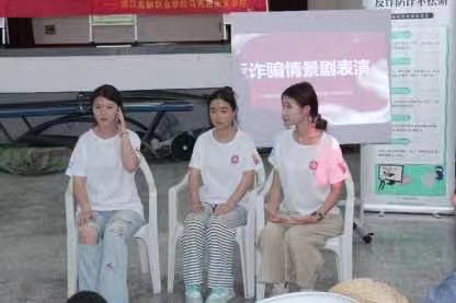 接著是王思琦的反詐宣講,同樣引人入勝。她通過一系列生動有趣的互動問答,讓村民們在輕松愉快的氛圍中掌握了防騙技巧;而諸夢盈、沈婷婷等4人精心編排的反詐情景劇,更是將復(fù)雜的防騙知識融入到日常生活中,讓村民們受益匪淺。