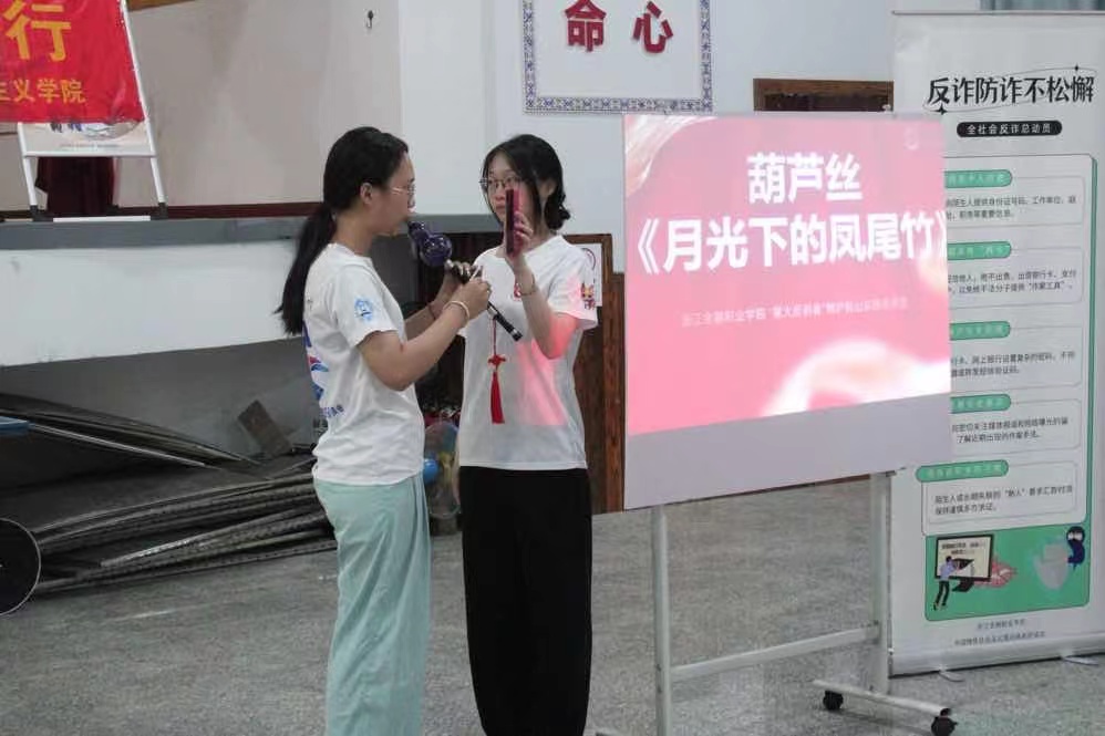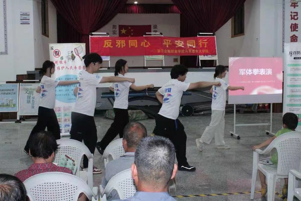 此外,王培菊的反假幣宣講也備受關(guān)注,她通過實(shí)物展示和現(xiàn)場教學(xué),讓村民們學(xué)會了如何辨別假幣,保護(hù)自己的財產(chǎn)安全。宣講之余,婉轉(zhuǎn)悠揚(yáng)的葫蘆絲表演、剛健有力的軍體拳展示,無不體現(xiàn)了金院學(xué)子的青春力量。