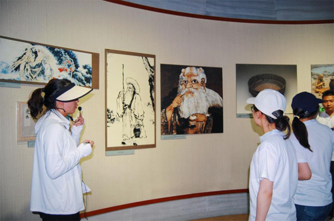 圖為講解員為實踐團成員介紹神農與華佗的關系。通訊員 彭盛琦