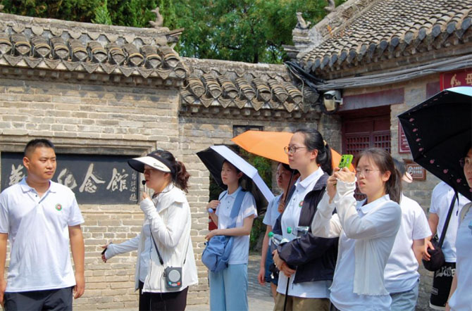 圖為講解員為實踐團成員介紹華祖庵歷史,介紹華佗紀念館。通訊員 彭盛琦