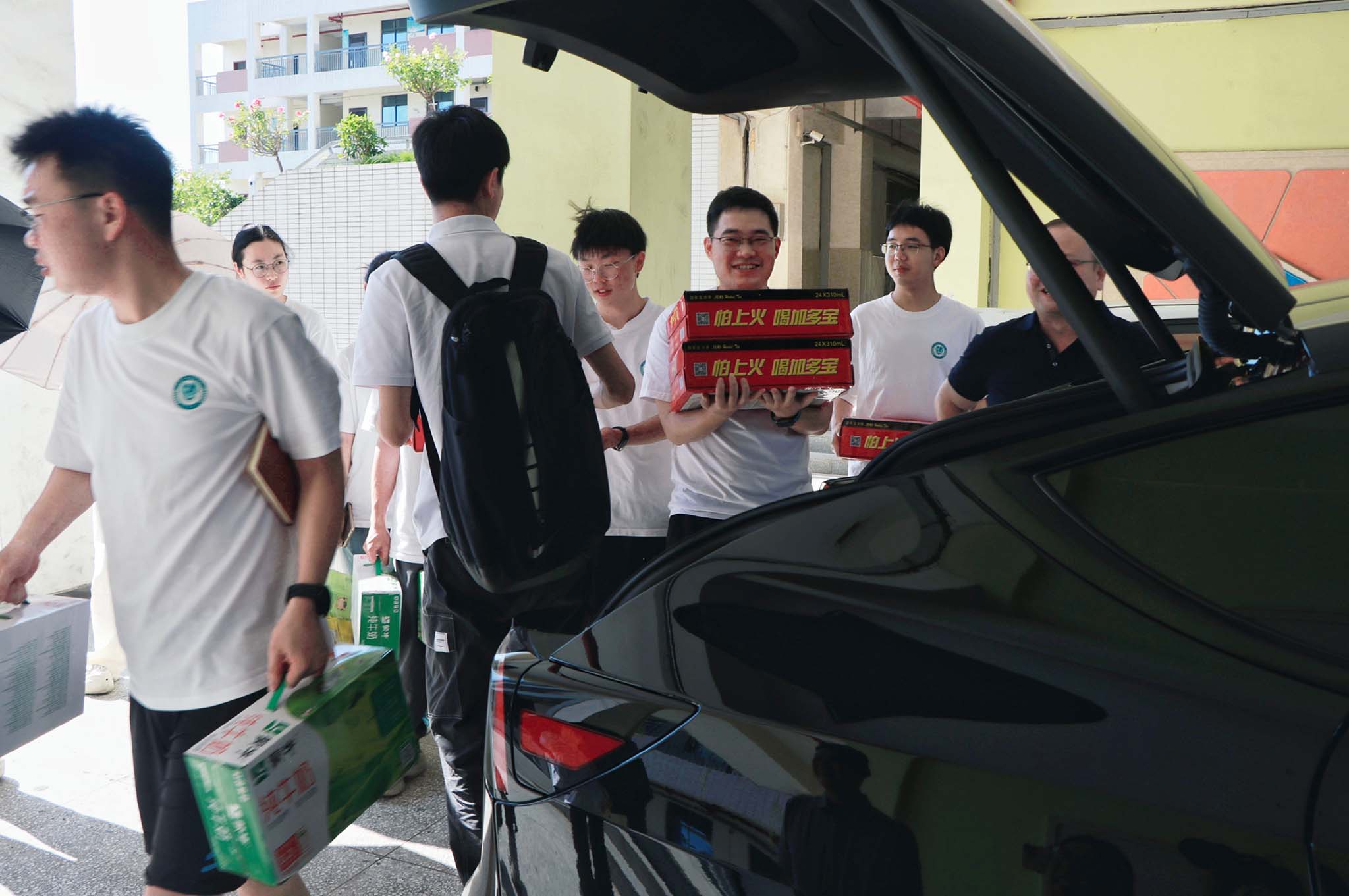 李志雄、鄭文升一行為實踐隊員們帶來了面包、餅干、牛奶等慰問品,隨后來到宿舍查看了設施配備狀況和衛生條件,囑咐隊員們在忙碌的實習實踐中,要注意健康飲食和規律作息,加強身體鍛煉,保持良好作風,以昂揚的面貌和飽滿的精神開展接下來的工作。