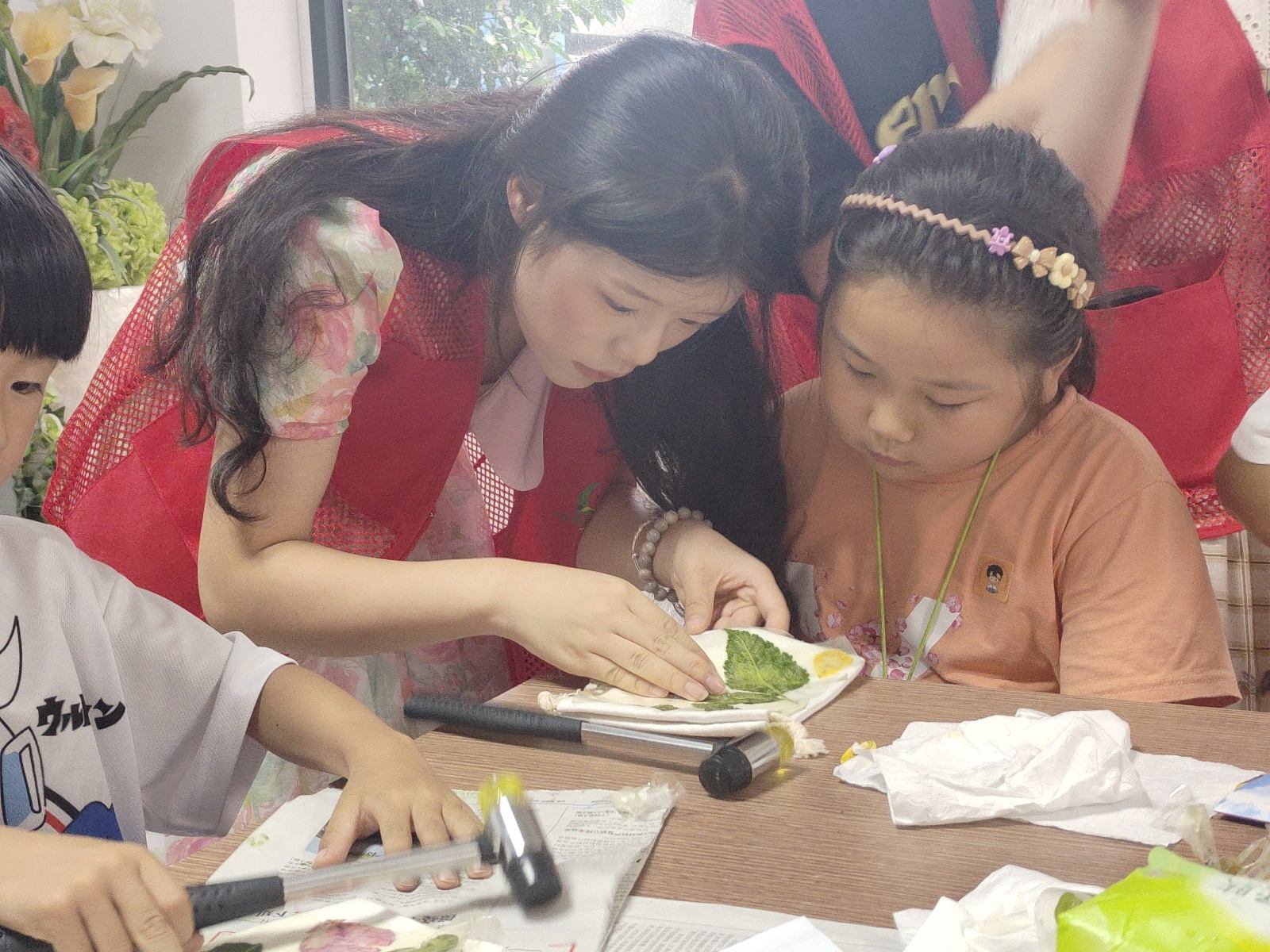 2024年7月5日下午三點,只此青綠暑期社會實踐隊于高校園社區成功舉辦了一場以“了解自然,走進自然”為主題的植物拓印活動。旨在增強眾多居民對自然環境的認識與保護意識,促進人與自然和諧相處。