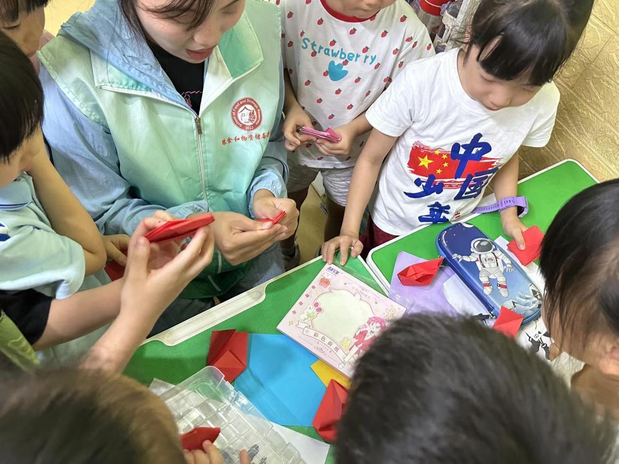 此外,志愿者們還傳授了折紙藝術的技巧。通過簡單明了的步驟和富有趣味的示范,小朋友們學會了如何折制出形態各異的紙藝作品。折紙活動不僅鍛煉了小朋友們的動手能力,激發了他們的創造力,還在輕松愉悅的氛圍中加深了他們對節約糧食理念的理解。