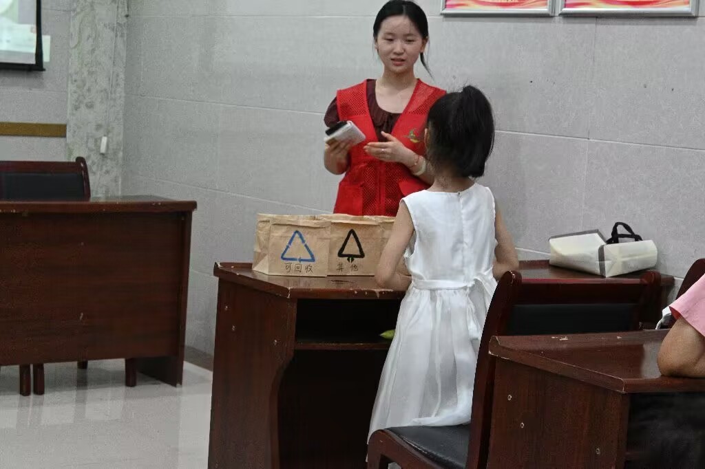 圖為志愿者進(jìn)行垃圾分類宣講現(xiàn)場(chǎng)。只此青綠志愿服務(wù)隊(duì) 李林炎 供圖