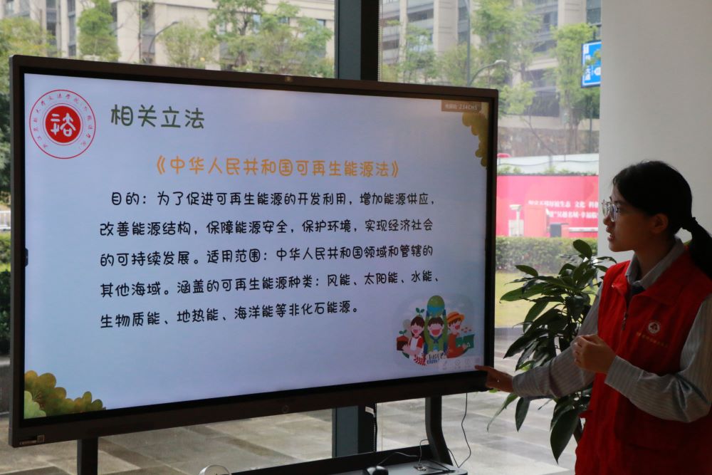 科普先行,在孩子們心中種下生態的種子。在知識的田野上,科普的種子悄然生根,在孩子們的心中綻放出智慧的花朵。實踐團的林嘉怡同學成為孩子們的生態科普小老師,她用生動有趣的講解,深入淺出地闡述了垃圾分類的深遠意義,讓孩子們明白這不僅僅是一種簡單的日常行為,更是對地球家園的深情呵護。她也強調了維持生態環境的必要性,讓每一個孩子都感受到自然生態的脆弱與珍貴。同時,林同學還向孩子們宣講了生態環保法律的相關知識,包括生活中的關于垃圾分類的法規法條,關于大自然的生態法。實踐團希望用普法的形式進一步加深孩子們的生態意識。孩子們聚精會神地聆聽,他們積極參與討論,爭相回答問題,展現出了對生態環保知識的濃厚興趣與求知欲。實踐團認為青少年是國家的未來和希望,他們的環保意識直接關系到我們國家的可持續發展,關系到我們祖國的生態未來。通過林嘉怡同學的精彩講解,孩子們不僅深入理解了生態環境的重要性,更學會了如何在日常生活中踐行環保理念,并且了解了關于綠色生態的相關法律知識。