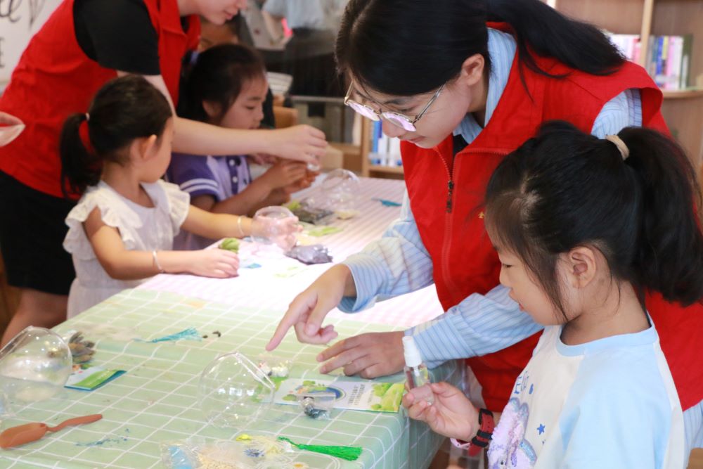 生態護綠,在實踐中鑄就綠色心靈。為加深孩子們對于生態環保知識的認識,并用“寓教于樂”的方式讓孩子們在歡樂的氛圍中學習,實踐團以制作生態瓶為載體,讓孩子與家長們在實踐中感受生態帶來的心曠神怡。活動現場,孩子們熱情高漲,他們圍坐在一起,認真聆聽著老師對生態瓶制作方法和養護知識的講解。隨后,孩子們紛紛動手,在實踐團成員的熱情幫助下與相互幫助之下,挑選自己喜愛的材料,如五顏六色的小石子,生機盎然的多肉等,將它們精心放置在透明的玻璃瓶中,搭建起一個個別致的微型生態系統。此次活動不僅鍛煉了孩子們的動手能力和團隊協作能力,更讓他們深刻感受到了保護生態環境的重要性。孩子們表示,通過這次活動,他們更加明白了生態平衡的意義,也愿意為保護環境貢獻自己的一份力量。在活動的最后,孩子們捧著自己精心制作的生態瓶,與實踐團成員一起拍照留念,照片上孩子們純真的笑容,無時無刻表明著那一顆成為生態衛士的夢想萌芽已在小朋友的心中種下,在今后的悉心培養下,定會長成參天大樹,為地球家園增添更多綠意。