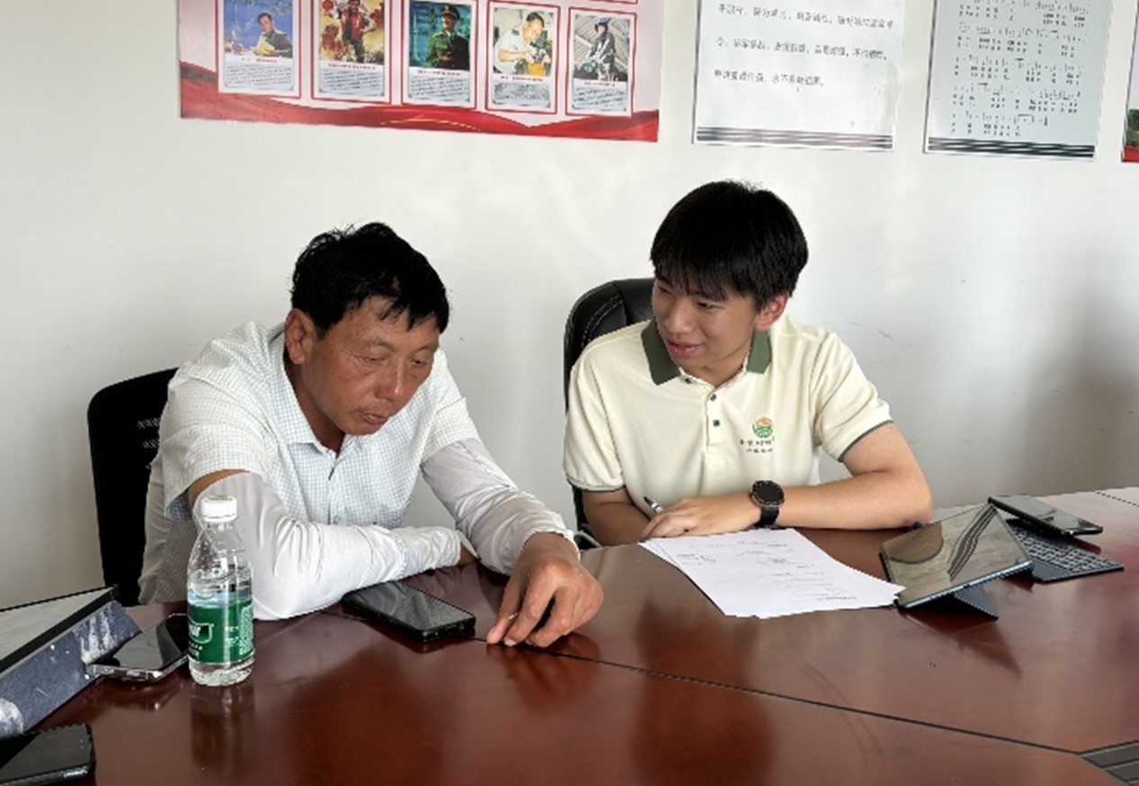 圖為實踐隊員與楓糖村種糧大戶進行深入訪談。 通訊員 俞姝含 攝