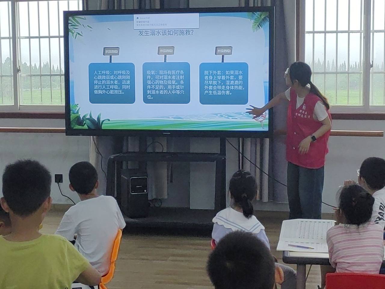 接著,周小軒老師向孩子們介紹了暑假防溺水安全工作。親切的話語和有趣的例子搭建了知識傳遞的橋梁,“我暑假不單獨去河邊玩耍。”有孩子分享到。