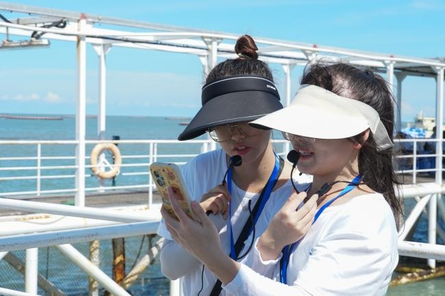 清晨,當第一縷陽光灑在海面上,突擊隊的成員們已整裝待發,滿懷激情地登上了前往漁場的漁船。在漁民的帶領下,隊員們首先參觀了漁場的現代化養殖設施,如:深海網箱;親眼見證了新質生產力如何助力海洋漁業實現高效、可持續發展。“原來在海中是這樣養魚的!”隊員小何感慨道,其余隊員點頭贊同并高呼“學到新知識啦!”,這些先進的養殖技術和設備讓他們對海洋產業的認識更進一步,也對祖國海洋產業的大好發展前景與魅力深感自豪。