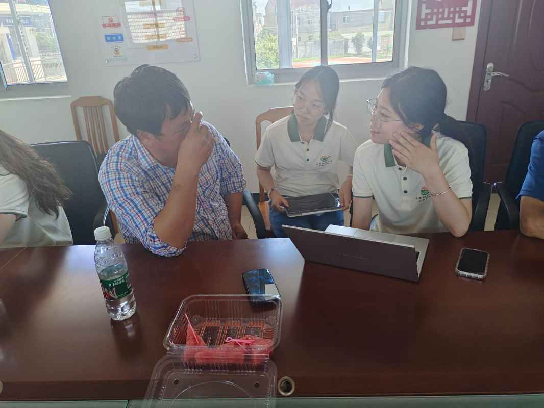 圖為團隊成員同村委會干部及種糧大戶座談。通訊員 秦嘉悅 攝。