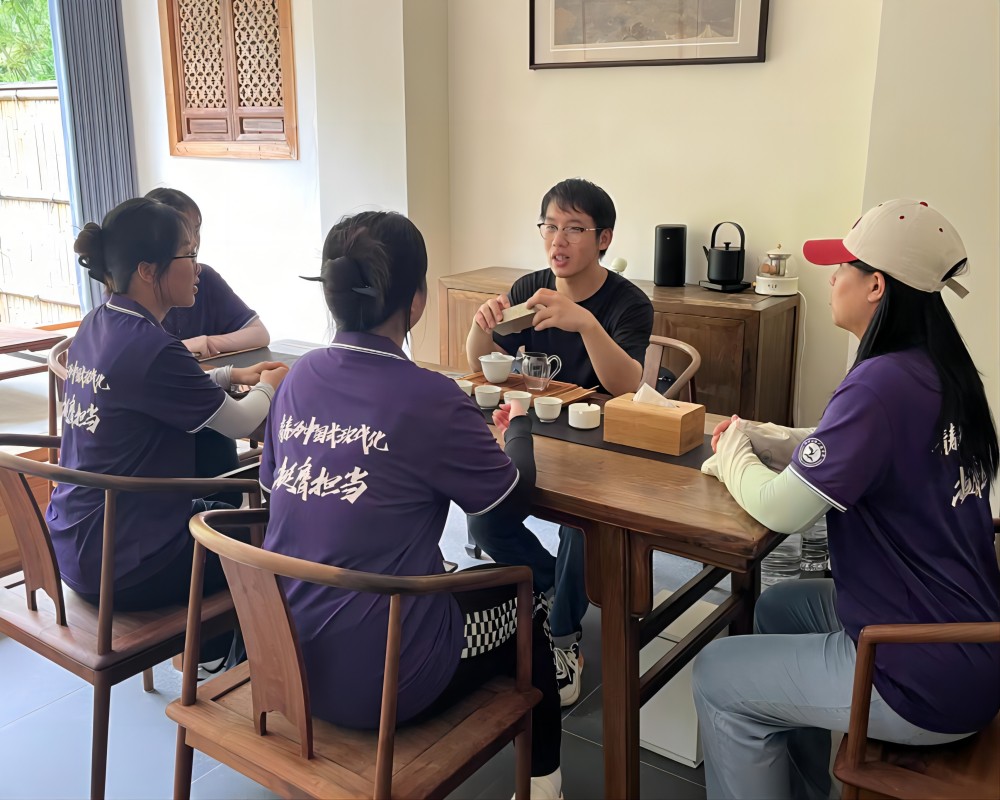圖為2024年7月4日實(shí)踐團(tuán)隊(duì)成員與接待員一同品茶“同赴大別山,共襄振興夢(mèng)”團(tuán)隊(duì)成員李志晨供圖