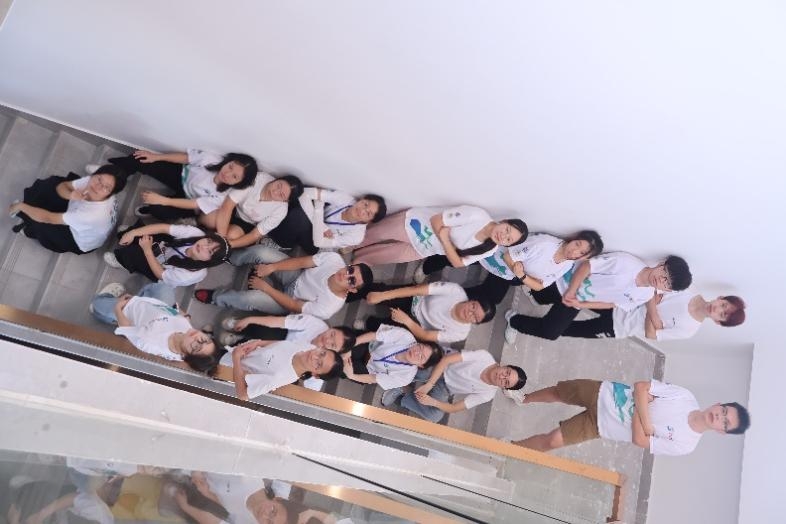 在宣傳組組長張翰月的帶領下,“朝陽行”突擊隊的隊員們精神飽滿,充滿期待地投入到拍攝工作中。宣傳組成員駱興乾和徐于婷發揮專業才能,精心策劃拍攝方案,指導隊員們在展廳四樓的樓梯間找到了最佳的拍攝角度。隊員們雖分布于各層臺階,卻形成了有序而生動的畫面,完美展現了團隊的凝聚力和青春活力。