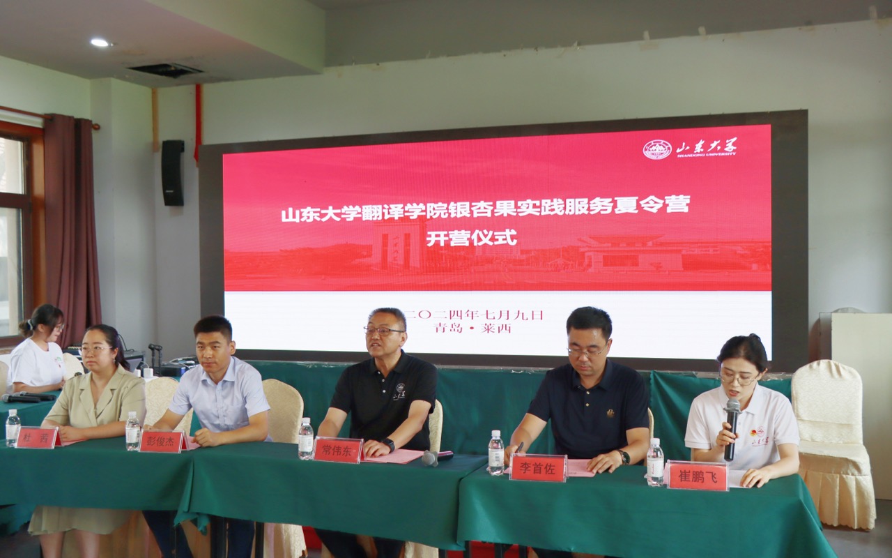 銀杏果實踐服務團是由來自山東大學翻譯學院的四位教師,二十名本科生,兩名研究生組成。營員由來自青島萊西各小學、初中的近五十名孩子組成。銀杏果以“服務山東,筑夢青春”為宗旨,致力用腳步丈量山東鄉村大地,此次將以萊西為活動起點,在青島萊西東魯生態產業園開展暑期夏令營活動。實踐服務團宣講組將開展西柏坡精神宣講活動。興趣組將拓展素質空間,打造美育第二課堂,鼓勵學生參與到多語話劇、舞臺表演中來,感悟音樂的美妙,體驗舞蹈的樂趣,享受運動的童真,發現世界的魅力。教學組開設課程以語文、英語、數學、物理、化學為主,同時輔以俄語、西語、法語、德語、日語基礎知識。調研組將考察當地農業、文旅業發展路徑,以青年品牌官的身份助推南墅鎮“出圈”,為鄉村發展貢獻綿薄之力;同時,調研組將探望當地老兵,走訪留守兒童家庭,建立長期聯系。