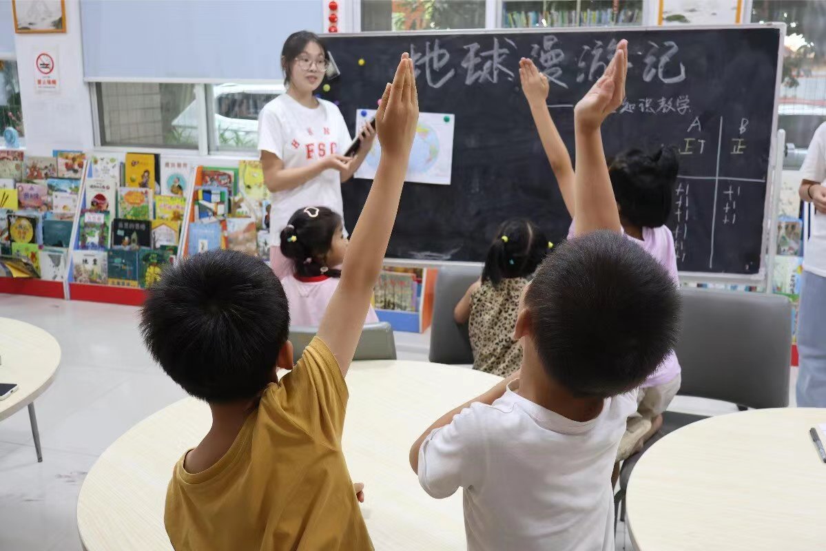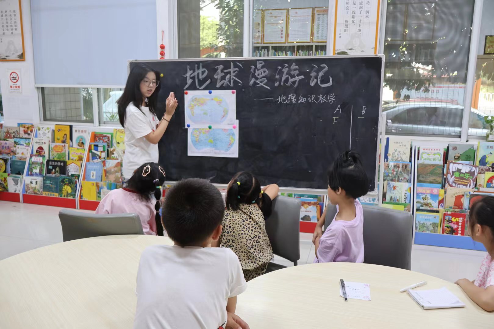 (通訊員 張心怡 吳楊煬 劉雅倩)7月9日,湖南師范大學外國語學院赴長沙市學堂坡社區(qū)暑期社會實踐團(以下簡稱“實踐團”)開展數(shù)學、地理趣味特色課程。實踐團成員張心怡、屈薇薇、劉彤彤、曾姍負責課堂教學。