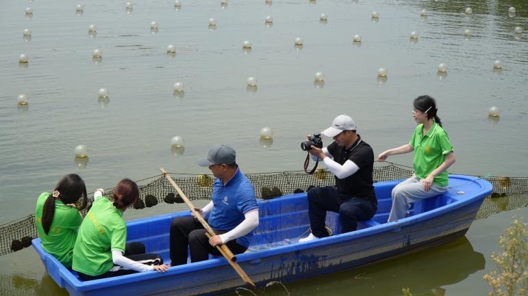 圖為社會實踐隊成員乘船參觀萬年珍珠養殖示范基地 生逢盛世,肩負重任。面向未來,新時代的青年要在鄉村振興的大舞臺上挺膺擔當,奮發有為,以昂揚的姿態為鄉村振興和推進文化發展貢獻出強有力的青春力量。江西科技師范大學“紅燭同心”社會實踐隊用社會實踐行動證實只要心中有夢想,有信仰,就必然能為中國式現代化建設奉獻屬于自己的力量。