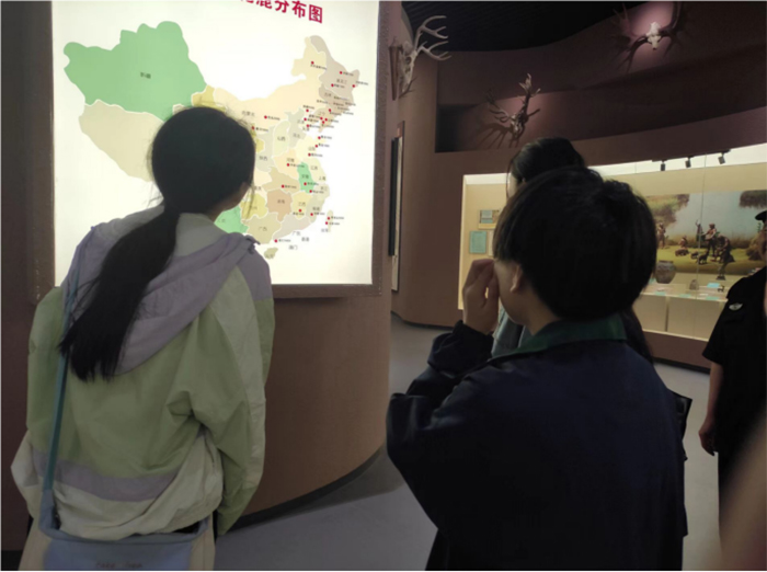 最后一站,長春行實踐團成員來到中國雙陽梅花鹿博物館,走進館內,歷史裹挾著陳舊古樸的氣息朝我們撲面而來,不同品種的鹿角整齊排列在墻上,給我們帶來了巨大的視覺震撼。講解員滿懷激情,為成員講解著梅花鹿與雙陽的不解之緣。梅花鹿貫穿雙陽文化、經濟、旅游產業發展,帶來不可估量的影響。