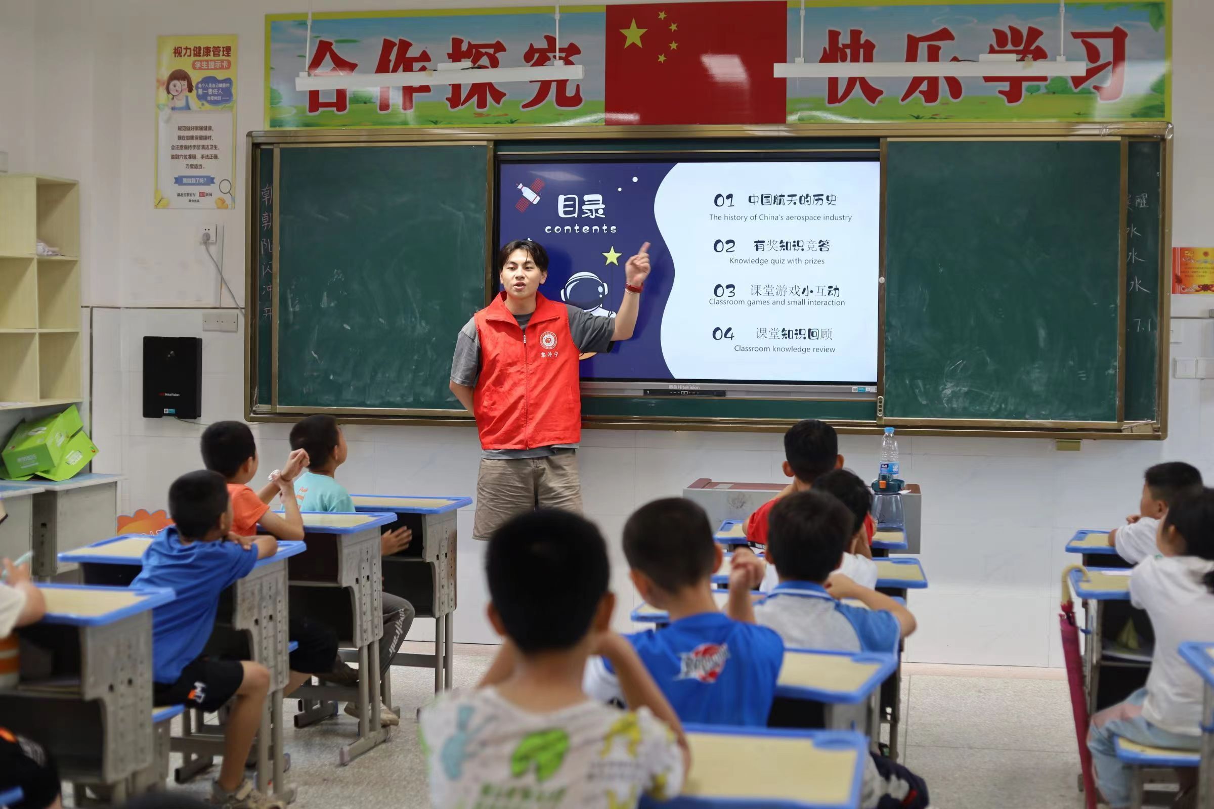 圖為志愿者向孩子們介紹中國航天。多彩大學生網 牛昊天 供圖
