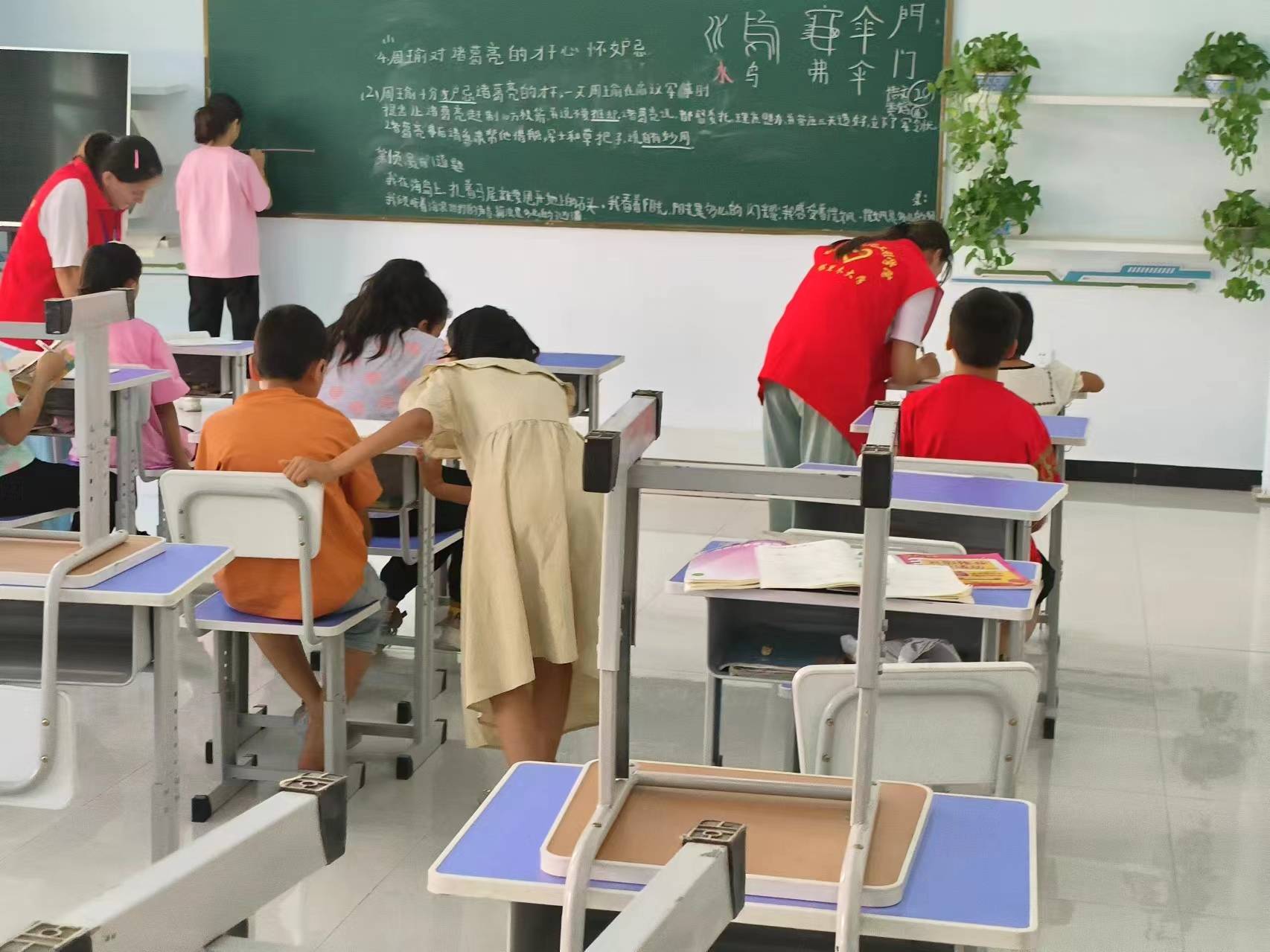 7月11日下午,志愿者帶領同學們進行“知識樂園”活動,讓同學們在學中有樂,樂中有學,隨后與同學們一起開展知識搶答活動,幫助同學們加深對知識的記憶。