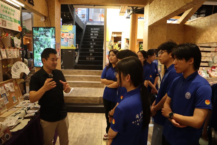 下午,研習社成員們來到了黃巷中的唯美客文創聚落,并與唯美客創始人許權先生開展座談交流。許權先生向研習社成員們介紹,唯美客集結了來自臺灣及本土的手作好物、創意良品、手作體驗、咖啡輕食、創意辦公等復合式文創業態。關于如何幫助閩臺創業青年,他講道:“從一平方創業項目到‘快閃店’再到入駐唯美客,采用階段式引進的方法,有效幫助來閩創業的臺灣青年妥善利用大陸的創業機遇,積極打造‘臺胞臺企登陸第一家園’。”不僅如此,在交談中研習社成員們還了解到,唯美客近年來不斷為臺灣青年就政府出臺的各項來閩就業創業扶持政策提供對接服務,助力臺灣青年來閩追夢、筑夢、圓夢。如今,唯美客已成為兩岸青年文化交流、創業的聚集地,許權先生還表示,希望通過“山、海、城、鄉”的定位進一步拉近兩岸青年的“交流心”。