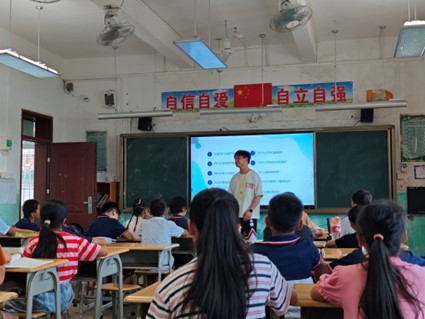 活動首日,林仕曉和覃士校兩位志愿者化身科學(xué)小導(dǎo)師,為林屋小學(xué)的孩子們帶來了一場別開生面的科普課堂。通過生動的實驗演示和深入淺出的講解,他們引導(dǎo)孩子們探索物理、化學(xué)的奧秘,讓孩子們在驚嘆與好奇中感受到了科學(xué)的魅力。課堂上,孩子們積極參與,爭相提問,現(xiàn)場氣氛熱烈而活躍。