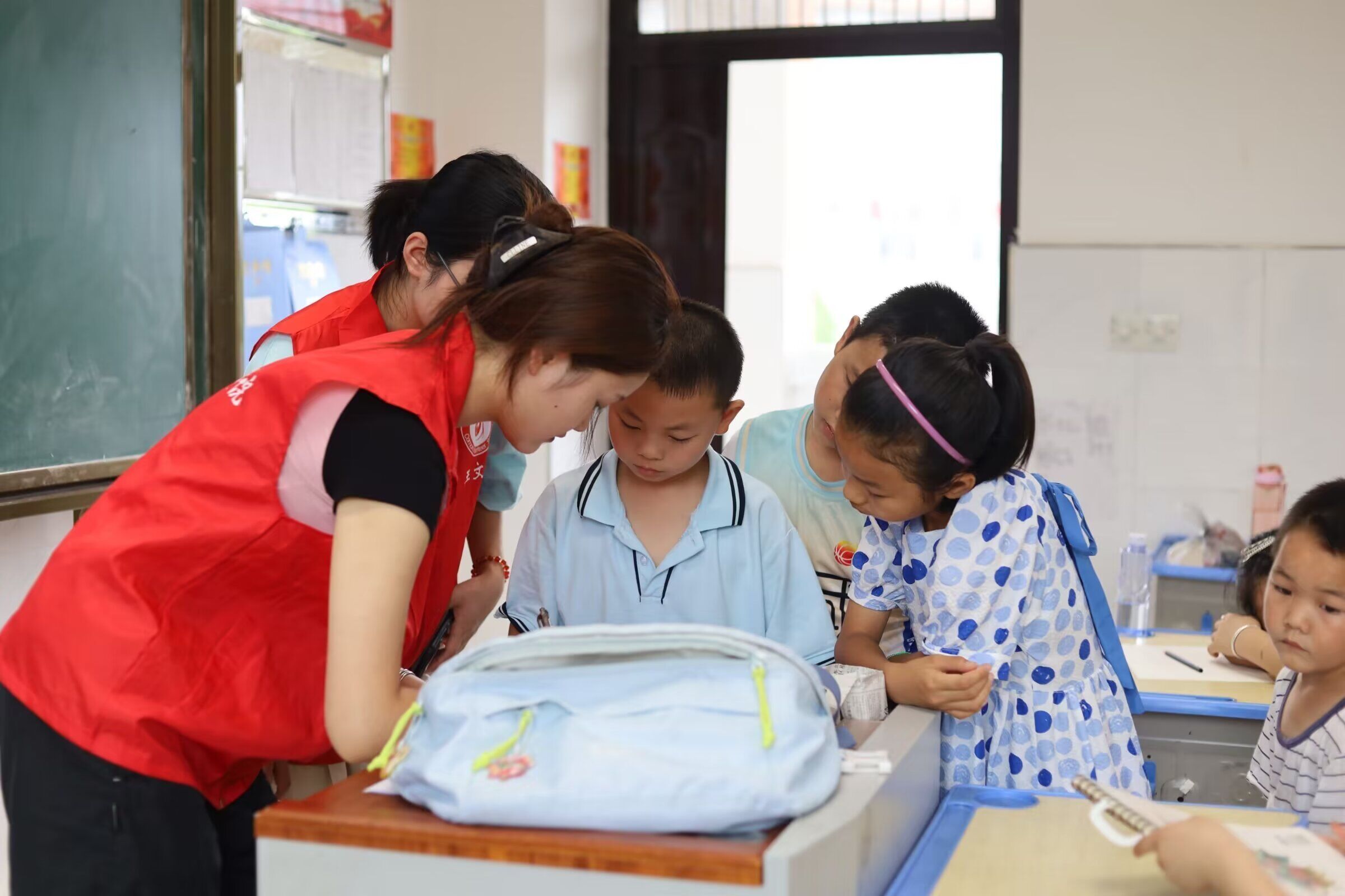 圖為志愿者在教學課堂中與小朋友互動時的照片。多彩大學生網 隆瑩瑩 供圖