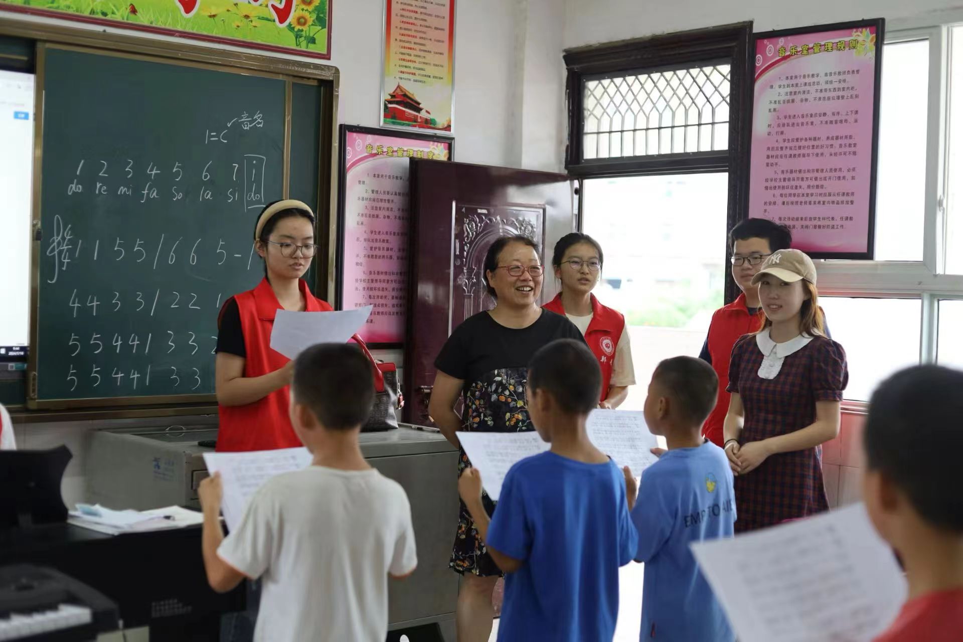 圖為志愿者和指導老師一起和孩子們上音樂課。多彩大學生網 隆瑩瑩 供圖