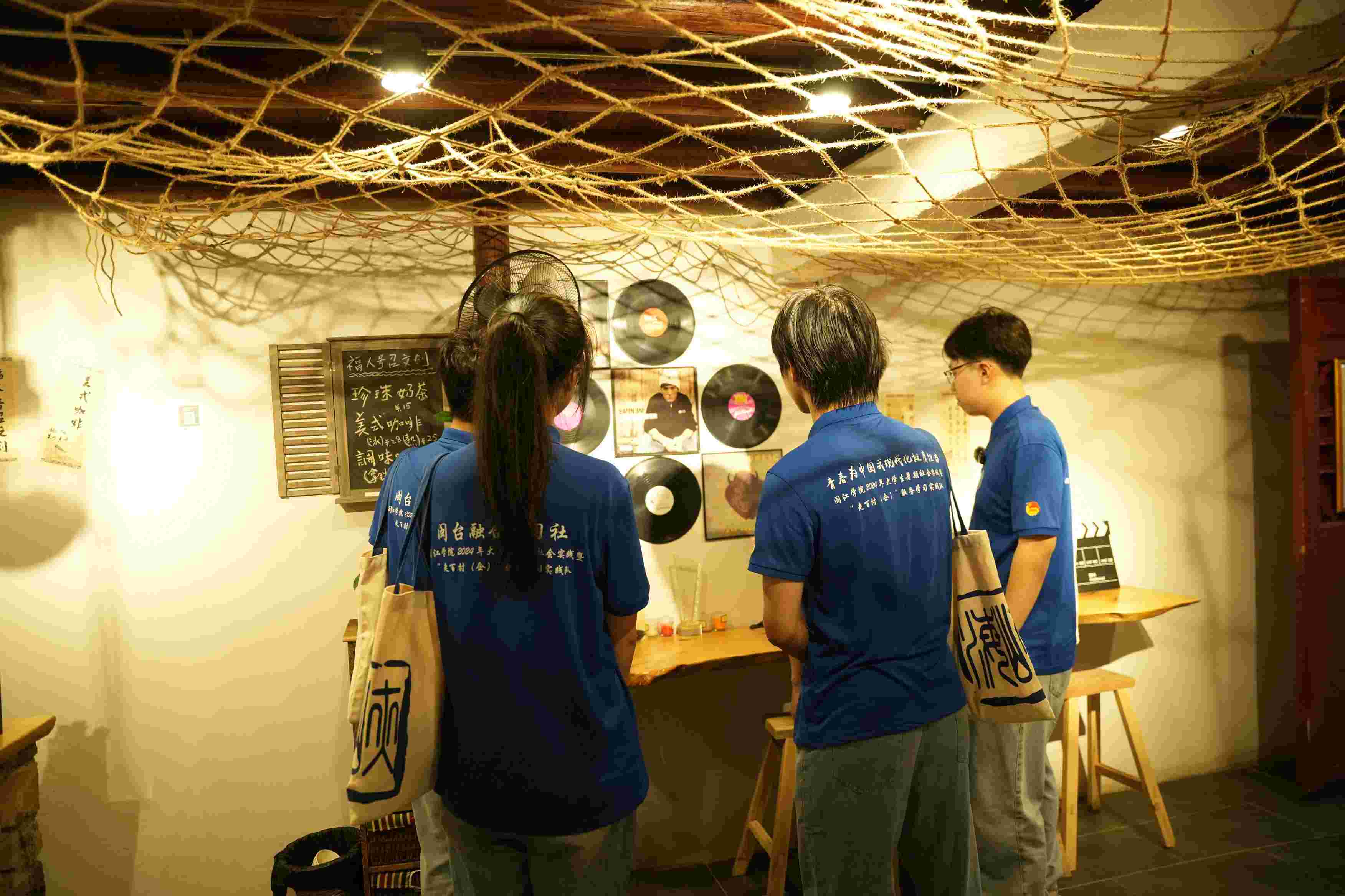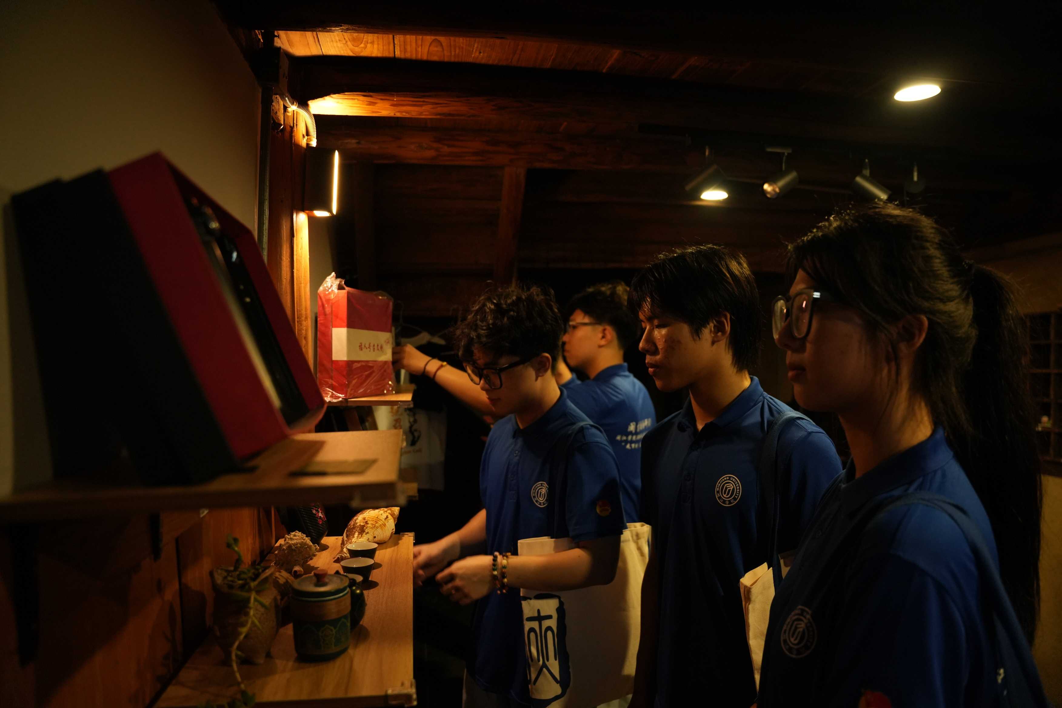 正如詩中所描述的,地處黃岐鎮東北部的古石村,與馬祖列島一衣帶水,是一個枕山靠海的石厝聚落。研習社成員們走進這個沉睡在海岸邊的百年石厝古村,去到經臺胞陳柏菁之手打造而成的福人號召文創基地。這里集文創生活、美食娛樂、創客體驗、休閑樂園為一體,是打造閩臺鄉建鄉創的典范。在基地工作人員的介紹下,研習社成員們了解到陳柏菁先生的獨特理念:“美食是拉近人與人之間最快且直達心靈的橋梁,希望可以通過我們的文創奶茶、咖啡、臺式烤腸等風味小吃,迅速拉近兩岸同胞的心。”
