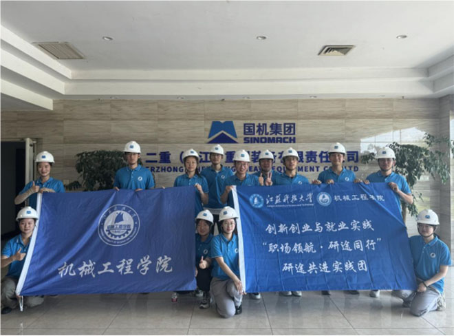 為了深入貫徹落實“創新創業與就業實踐”專項行動的精神,2024年7月4日,江蘇科技大學機械工程學院研究生會團委組建了研途共進實踐團(以下簡稱實踐團),前往二重(鎮江)重型裝備有限責任公司開展以“職場領航·研途同行”為主題的暑假社會實踐活動。實踐團通過實地走訪和同人事經理深入交流,調研了機械行業的發展趨勢,了解了企業的最新招聘動態和人才需求。面對如今就業難和用工荒的問題,隊員們本著“咬定青山不放松”的精神深入企業,了解企業的人才缺口和員工選擇標準,通過早了解、早接觸的方式為未來的職業發展和就業規劃打好基礎。