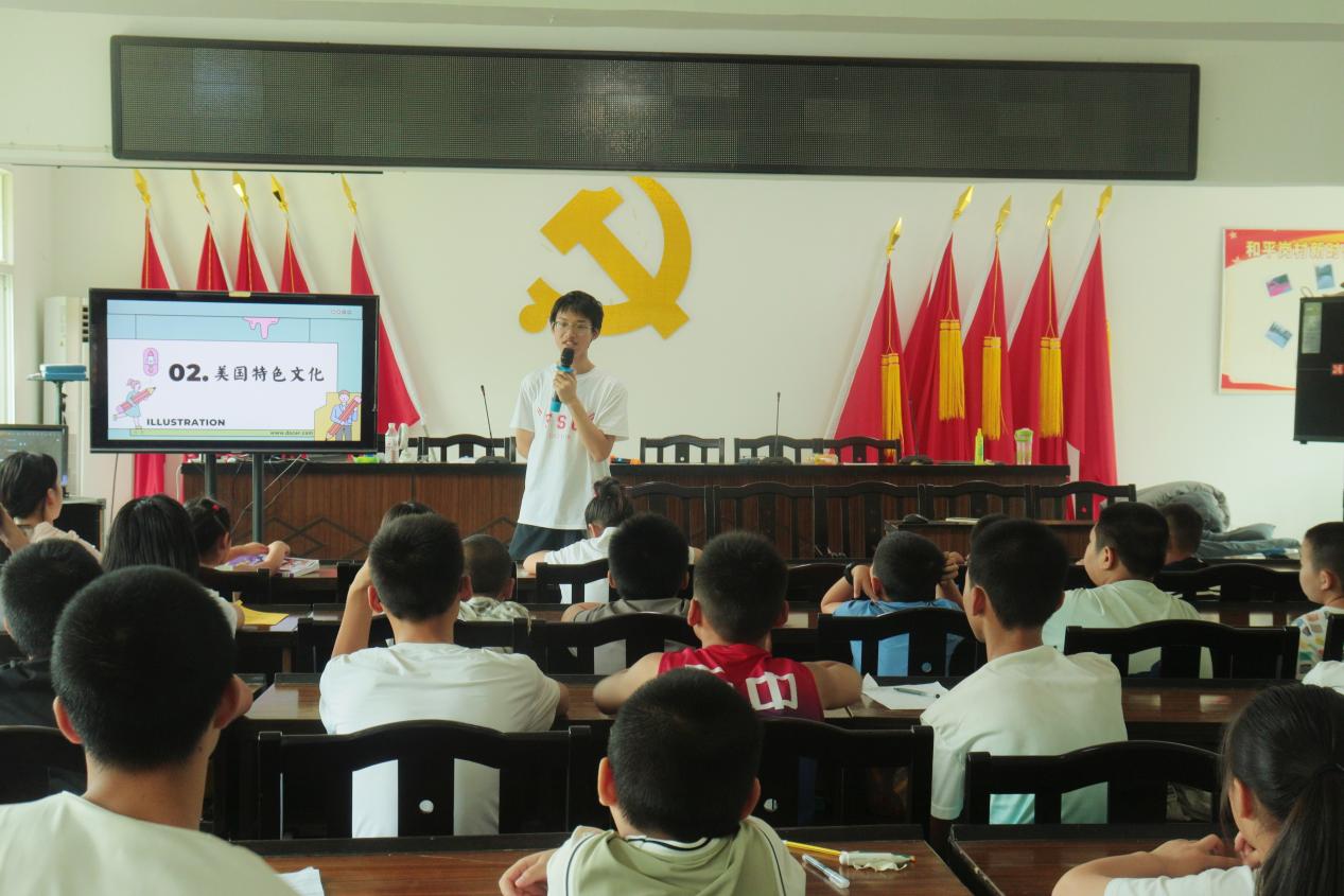 (通訊員 張鈺源 何怡靜 張璟然)7月13日下午,湖南師范大學外國語學院赴張家界市和平崗村暑期社會實踐團于和平崗村黨群服務中心開展美國國別文化課堂。此次課堂由實踐團成員顏磊擔任主講人。