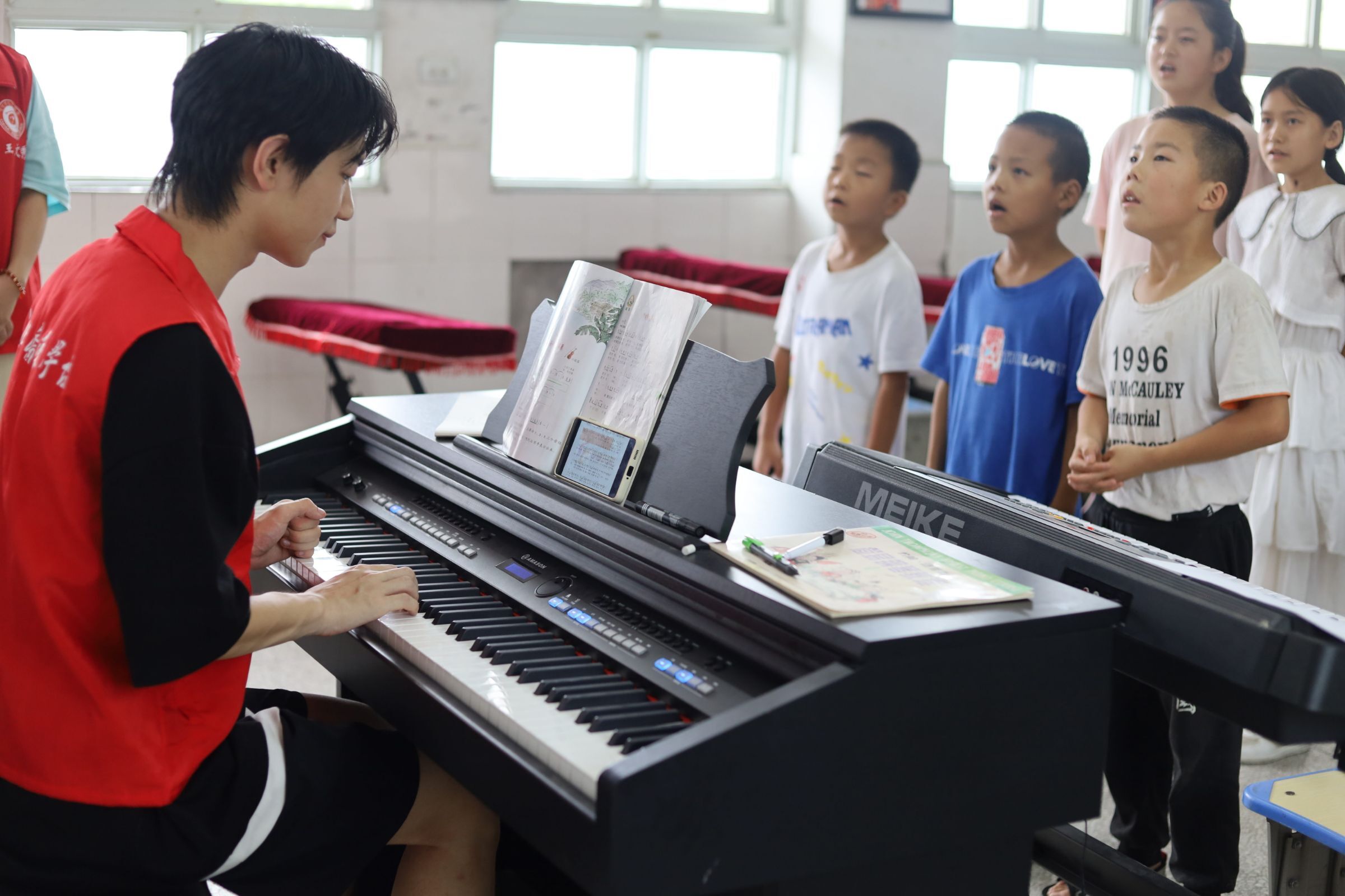 圖為志愿者在前面彈奏鋼琴和小孩子們大聲歌唱。多彩大學生網 隆瑩瑩 供圖
