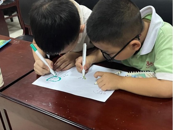 圖為小學生在畫紙上畫出自己的想法