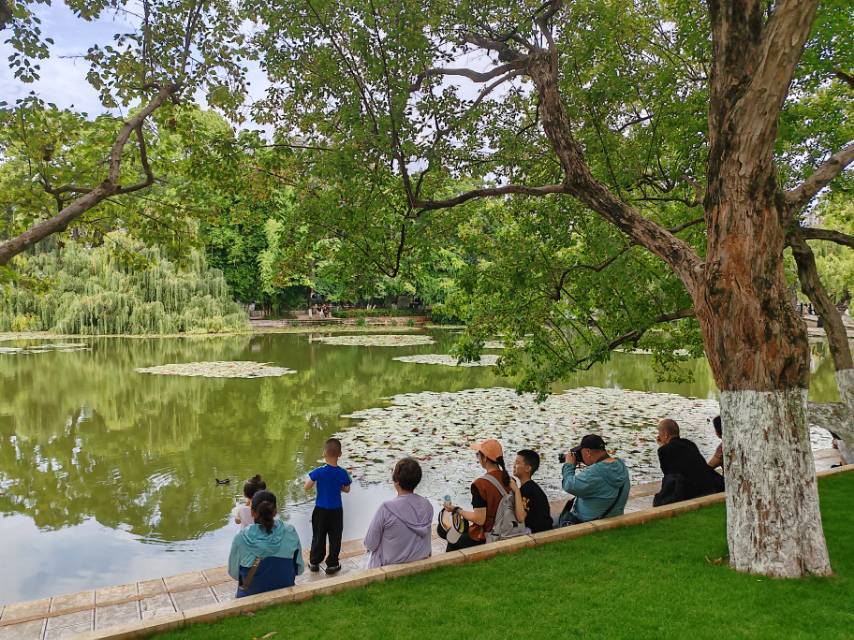 翠湖堤畔舊有“十畝荷花魚世界,半城楊柳撫樓臺”之聯,被譽為“城中碧玉”。