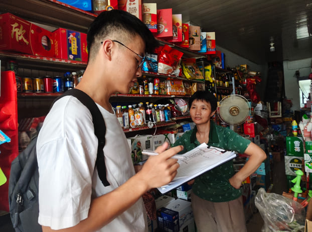 本次調研聚焦沿街商鋪,將團隊劃分成三組在豐樂鎮街道展開活動。在調研過程中,團隊成員走訪多家沿街商鋪與店主和顧客進行交流,深入了解豐樂鎮中心安置房小區周邊的商業環境和教育醫療資源。