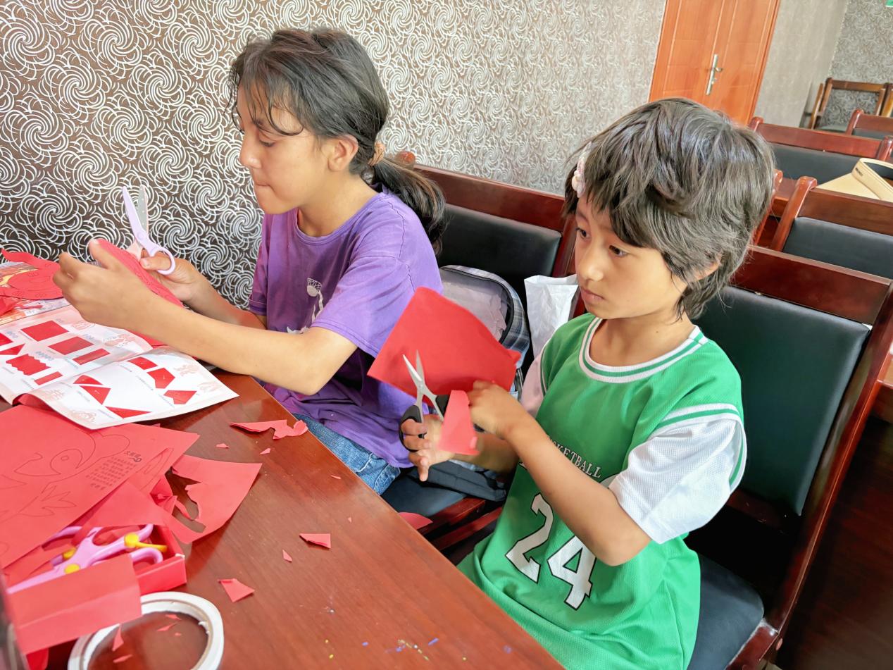 隨后,實踐團成員帶領社區青少年們進行了書法、繪畫、傳統剪紙、手工等一系列活動,旨在加強與青少年以及兒童的溝通,鼓勵他們勇敢表達自己的困難和問題。此外,隊員們通過了解不同年齡段青少年們的心理問題及困惑,進行針對性地開解和疏導,同時對于青少年的手工、繪畫作品給與肯定和支持,以此增強他們的動手能力和生活自信。